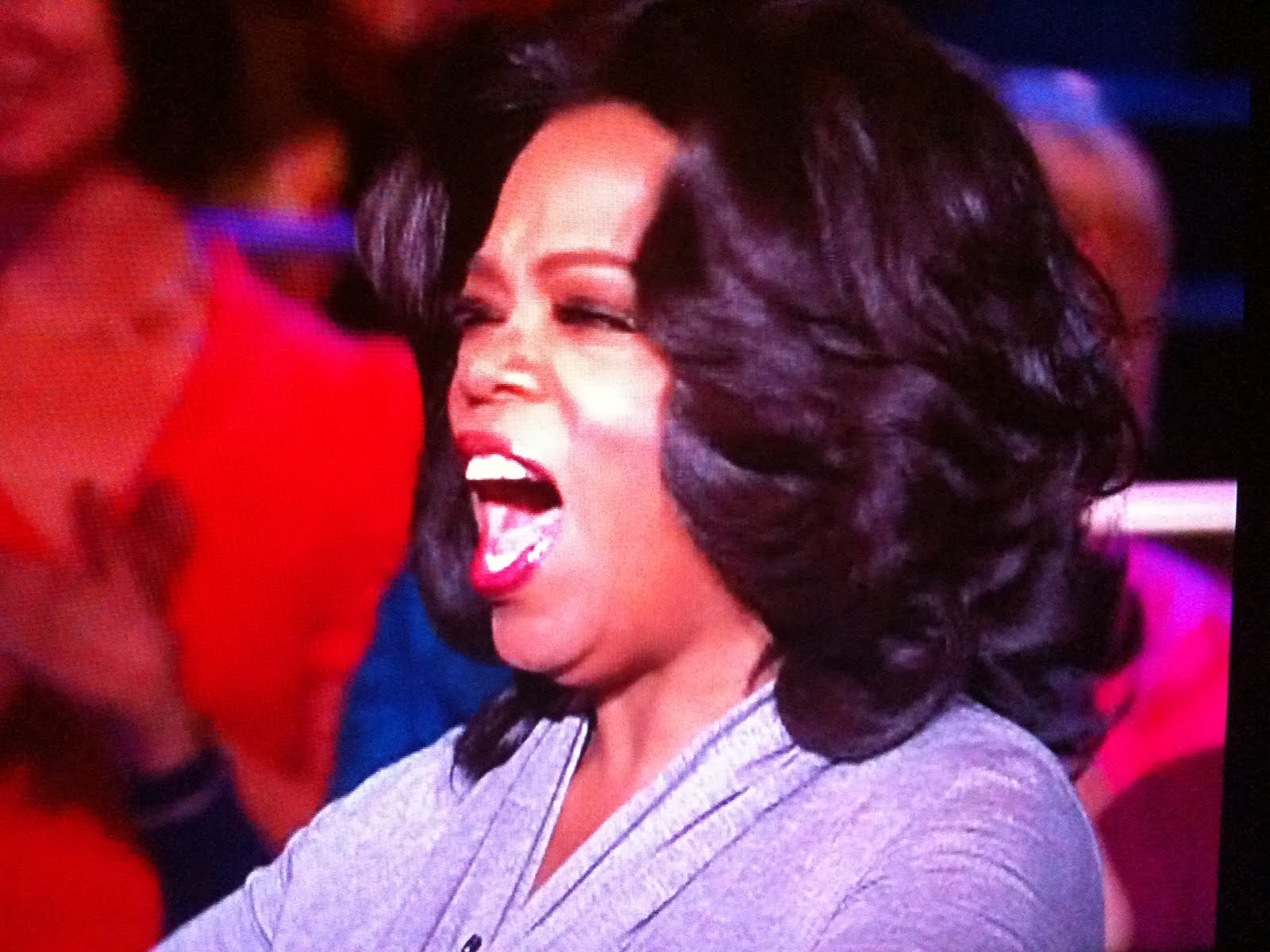Thank goodness. I was worried my Oprah-watching experience wasn't going to be complete if I didn't catch a glimpse of her singing along. The only problem is they didn't leave the camera on her long enough to see her mess up the words. Maybe next time.
